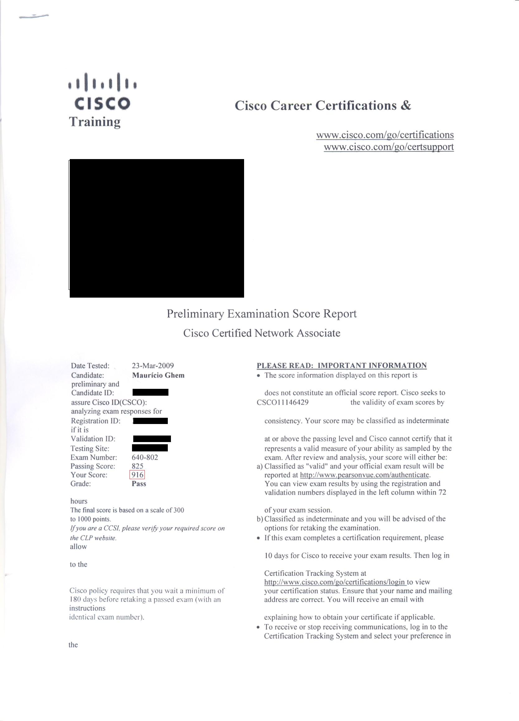 Acabei de postar na thread do forum do Marco “Passei no CCNA” sobre os meus resultados na Certificação CCNA 640-802.