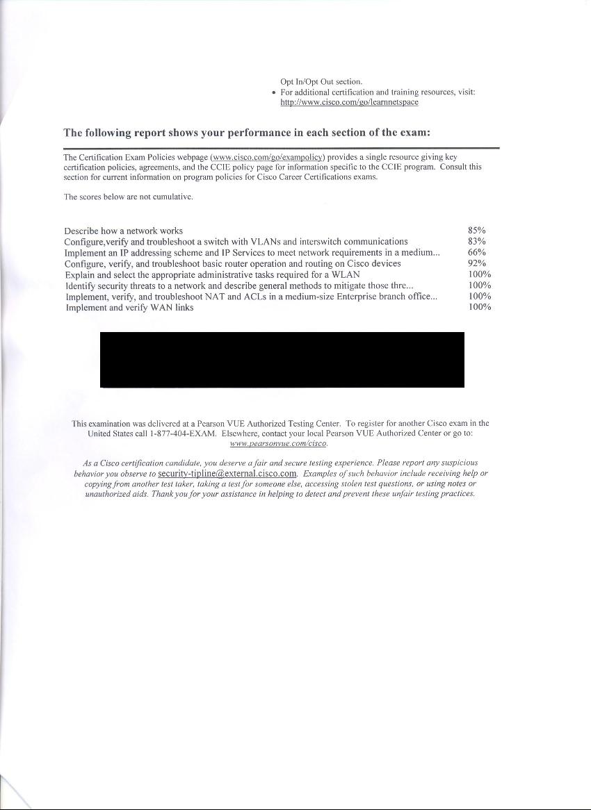 Caíram 2 laboratórios de configuração, 1 de dar shows e responder as questões, 3 drags and drops, muitas questões sobre VLSM e de resto todo o conteúdo. Uma questão de IPv6 me rachou a cara, não sabia um item e me ralei.